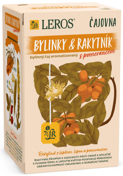 Leros Bylinky & Rakytník s pomerančem aromatizovaný bylinný čaj k odolnosti proti únavě, podporuje přirozenou obranyschopnost organismu i normální trávení 20 nálevových sáčků po 2 g