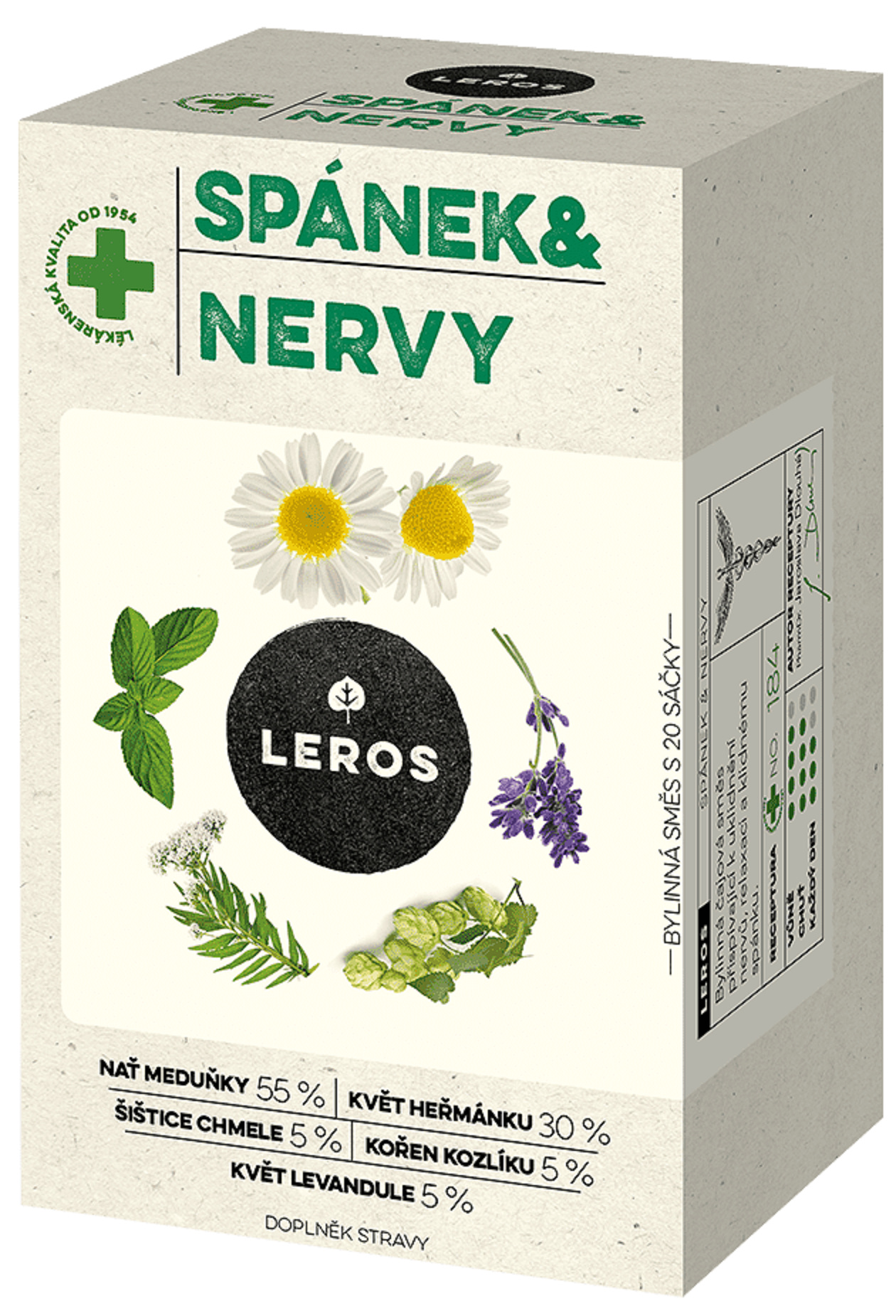 Leros Spánek a nervy bylinný čaj k uklidnění nervů, relaxaci a klidnému spánku 20 x 1,3 g