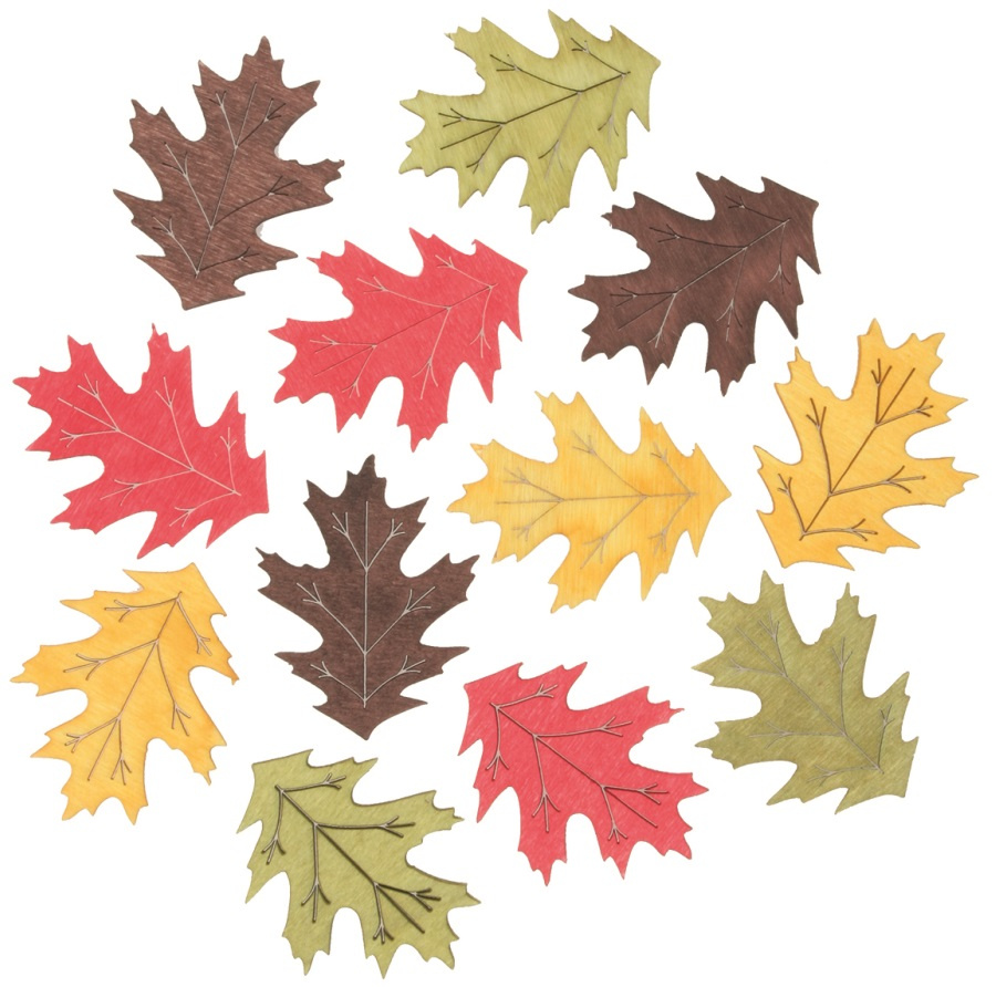Listy dřevěné žluto-zeleno-červeno-hnědé 4 cm 12 kusů