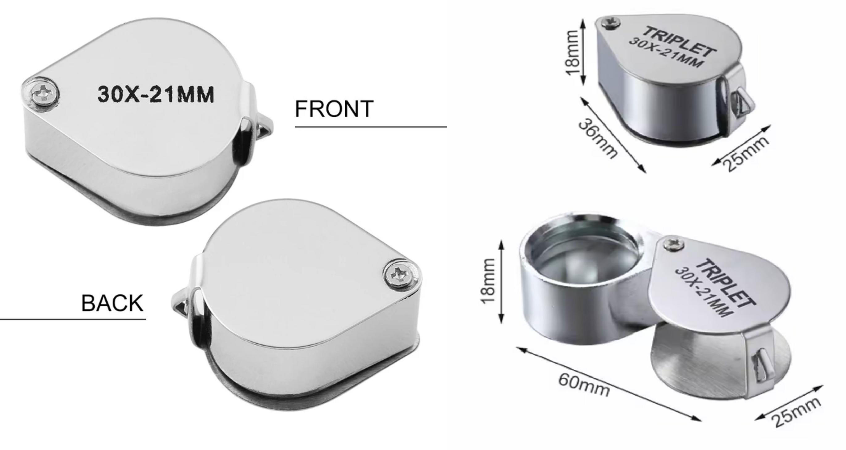 Kapesní skládací lupa se zvětšením až 30x je ideální pomůckou pro klenotníky, sběratele i domácí použití. Díky kvalitní optické skleněné čočce a odolnému kovovému tělu se hodí pro detailní kontrolu šperků, diamantů, mincí, známek, starožitností nebo elektroniky.