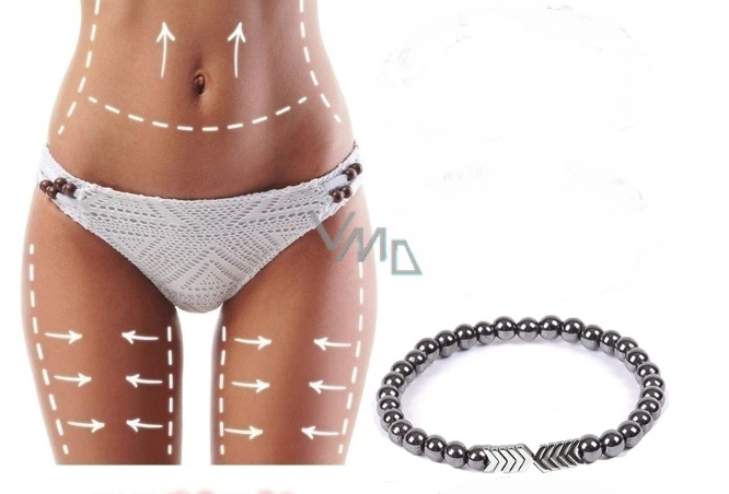 Magnetovec zeštíhlující náramek stříbrná barva elastický přírodní kámen, kulička 8 mm / 16 - 17 cm