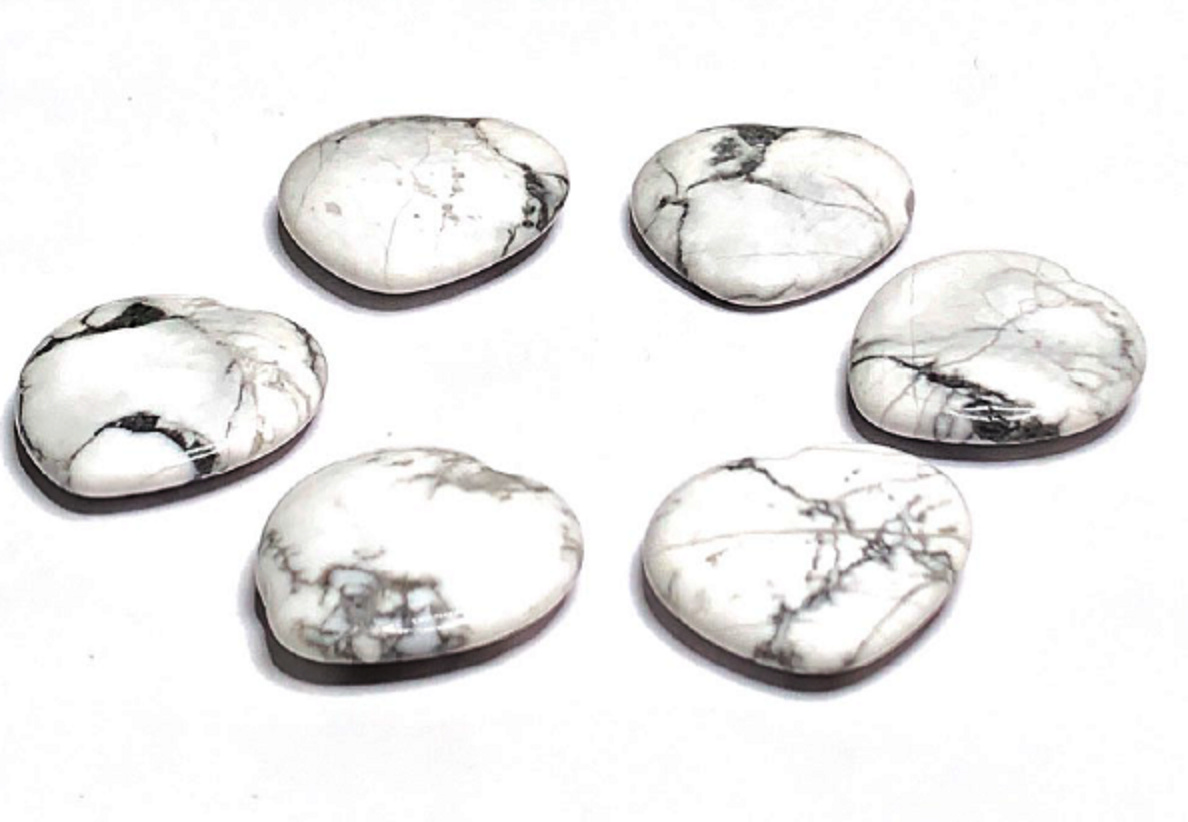 Magnezit / Howlit bílý Hmatka, léčivý drahokam ve tvaru srdce přírodní kámen 3 cm 1 kus, očistný kámen