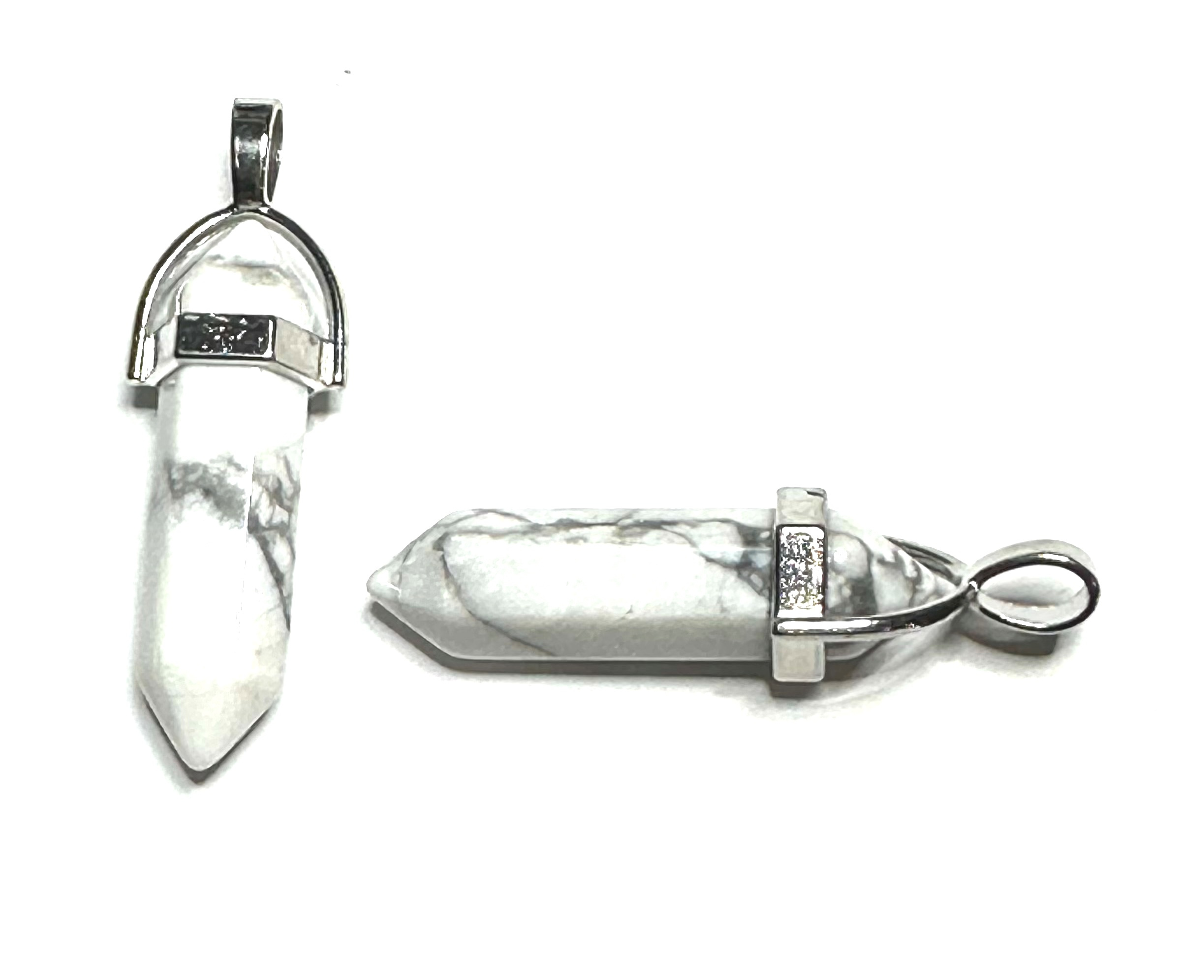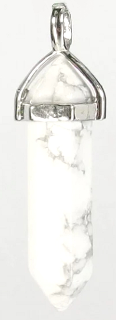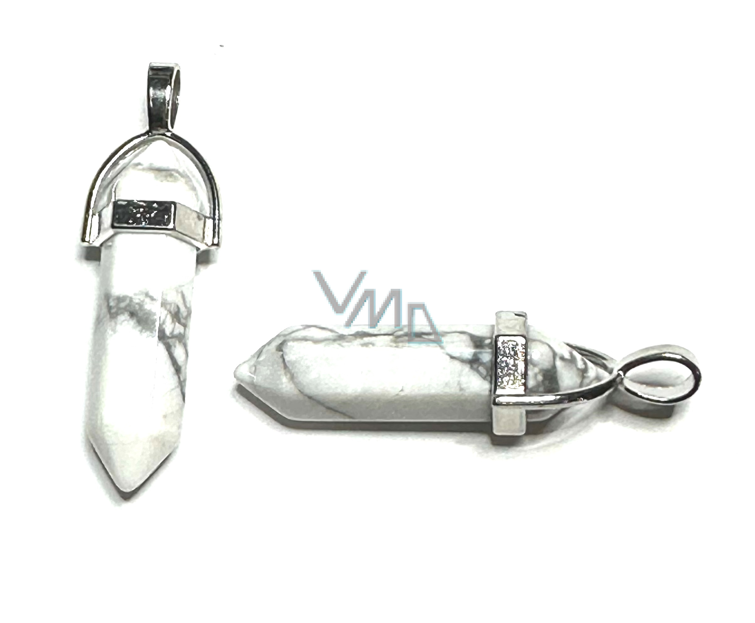 Magnezit / Howlit bílý kyvadlo šestihran přívěsek přírodní kámen 41 x 13 mm, očistný kámen