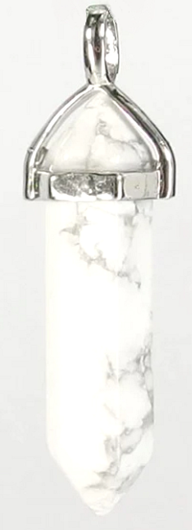 Popis Magnezit / Howlit bílý kyvadlo šestihran přívěsek přírodní kámen 41 x 13 mm, očistný kámen