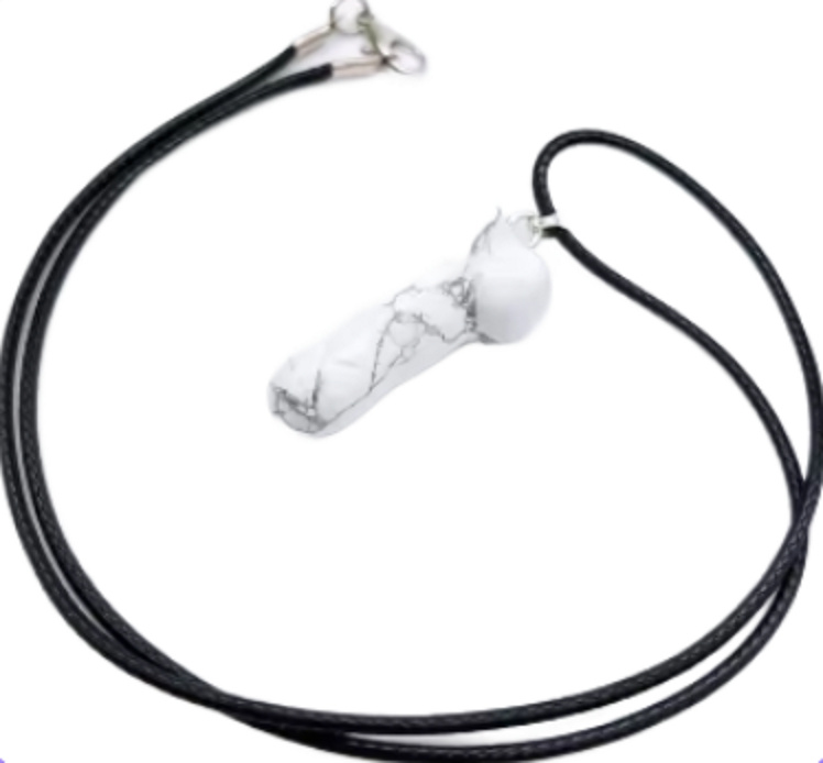 Magnezit / Howlit bílý Penis amulet pro plodnost, přívěsek přírodní kámen ručně broušený 3 cm