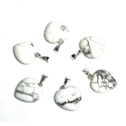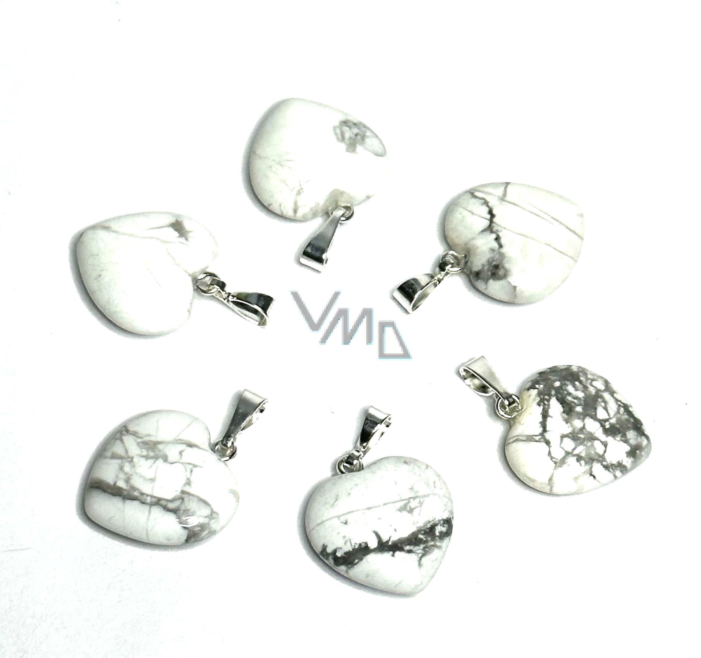 Magnezit / Howlit bílý Srdce přívěsek přírodní kámen 15 mm, očistný kámen