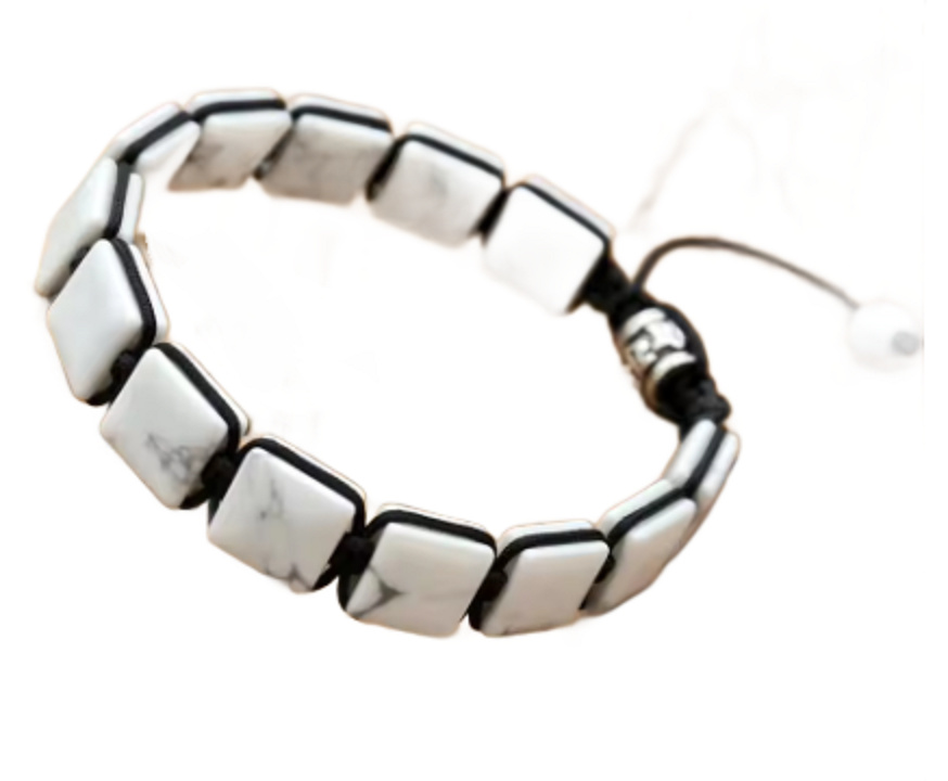Magnezit / Howlit náramek pletený přírodní kámen, rozměr 10 x 10 x 5 mm / 18,5 cm, posuvné zapínání, očistný kámen, uklidnění, harmonie, paměť