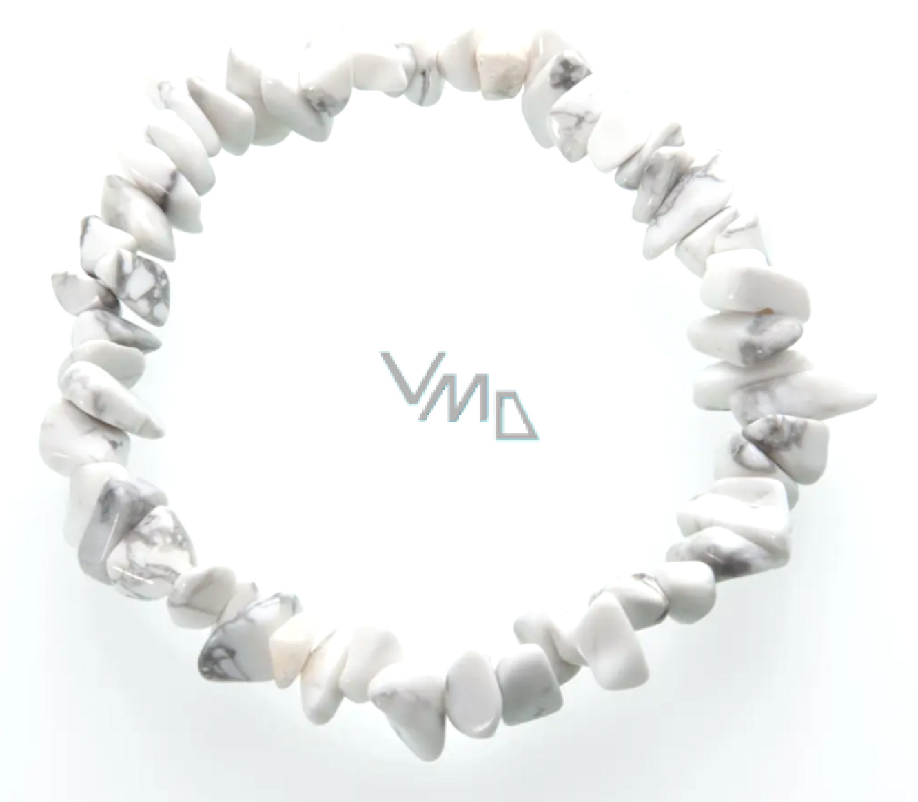 Magnezit / Howlit bílý náramek elastický sekaný přírodní kámen 19 cm, očistný kámen