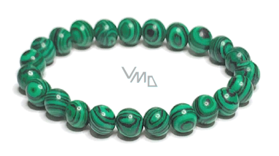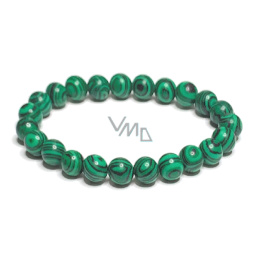 Malachit náramek elastický, kulička 8 mm / 16 - 17 cm, syntet. kámen splněných přání