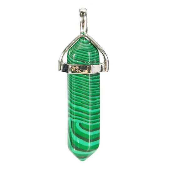 Malachit kyvadlo šestihran přívěsek přírodní kámen 41 x 13 mm, kámen splněných přání