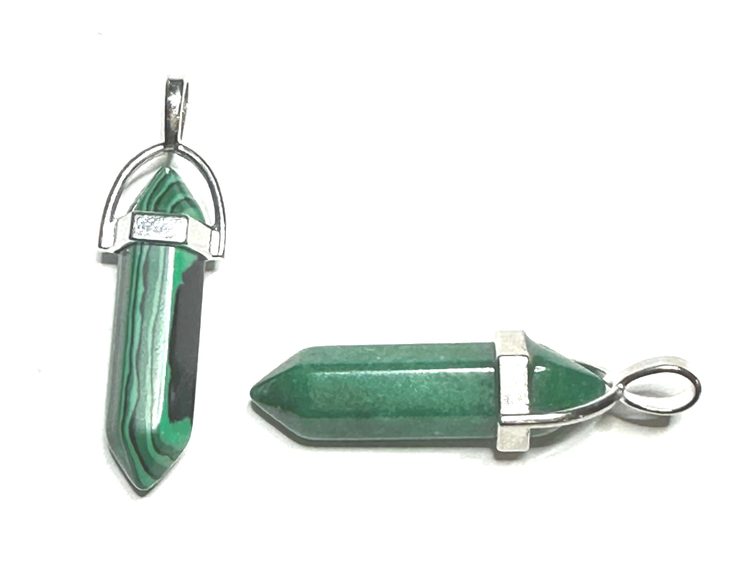 Malachit kyvadlo šestihran přívěsek přírodní kámen 41 x 13 mm, kámen splněných přání