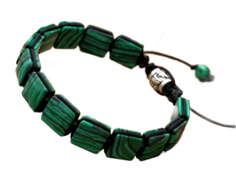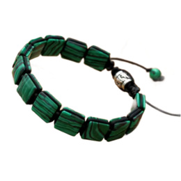 Malachit náramek pletený přírodní kámen, rozměr 10 x 10 x 5 mm / 18,5 cm, posuvné zapínání, kámen hojnosti, prosperujících vztahů
