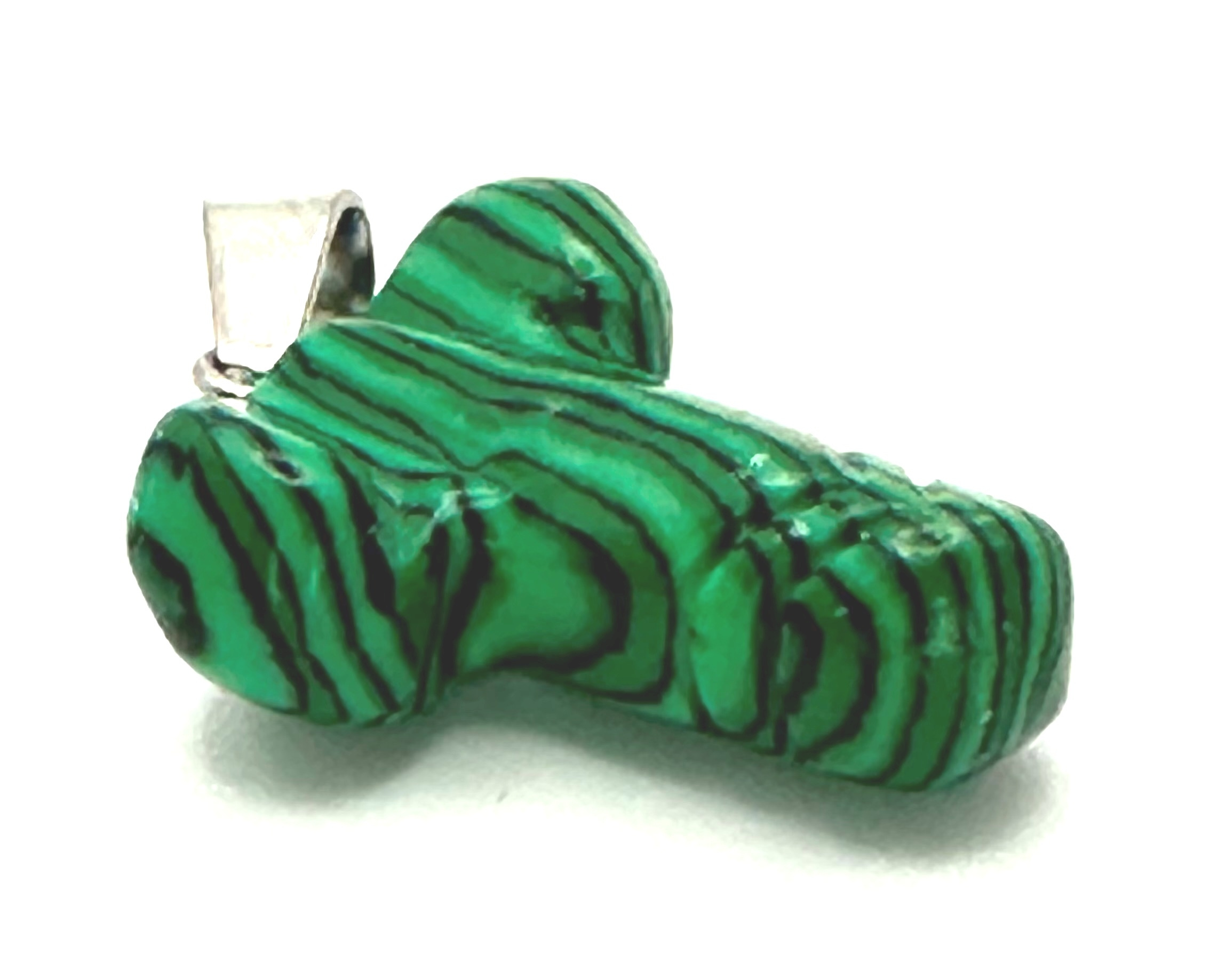 Malachit Penis pro štěstí, přívěsek ručně broušený cca 11 x 22 mm, kámen splněných přání