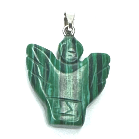 Malachitl Anděl, andělská křídla přívěsek ručně broušený 25 x 21 x 5 mm, kámen splněných přání