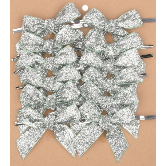 Mašle sametová stříbrná třpytivá 8 cm 12 kusů