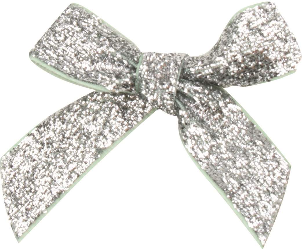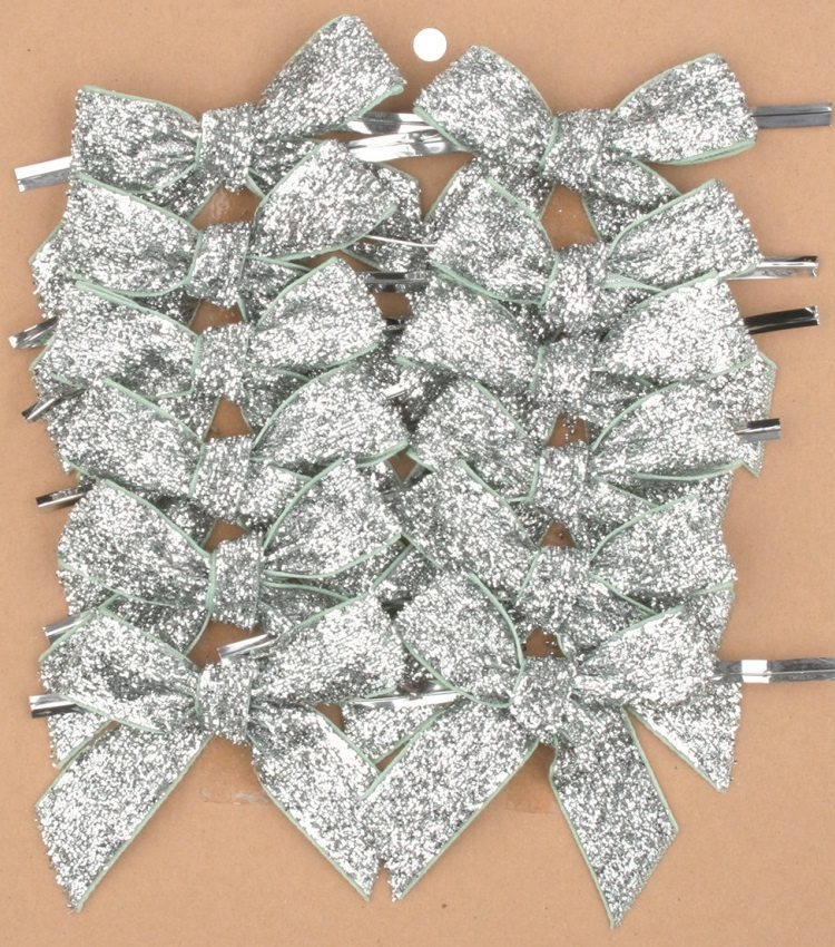 Mašle sametová stříbrná třpytivá 8 cm 12 kusů