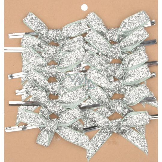 Mašle sametová úzká stříbrná třpytivá 8 cm 12 kusů