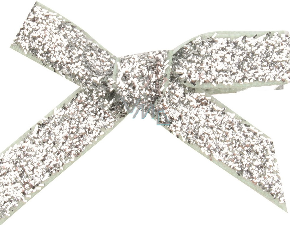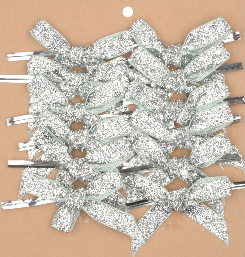Mašle sametová úzká stříbrná třpytivá 8 cm 12 kusů
