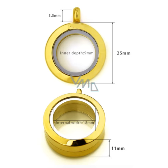 Medailon z nerezové oceli s otočným uzávěrem – zlatý, Ø 25 mm (tl. 11 mm)