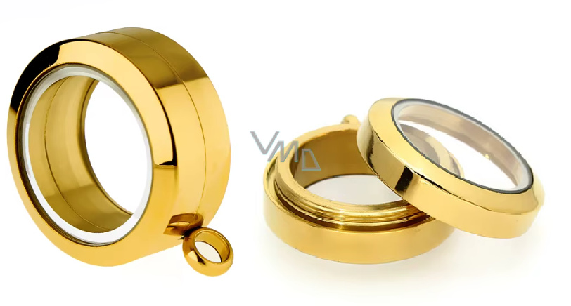 Medailon z nerezové oceli s otočným uzávěrem – zlatý, Ø 25 mm (tl. 11 mm)