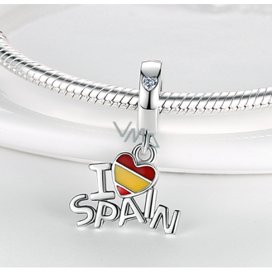 Charm Sterlingové stříbro 925 Španělsko vlajka srdce - Miluji Španělsko, 2v1 přívěsek na náramek cestování