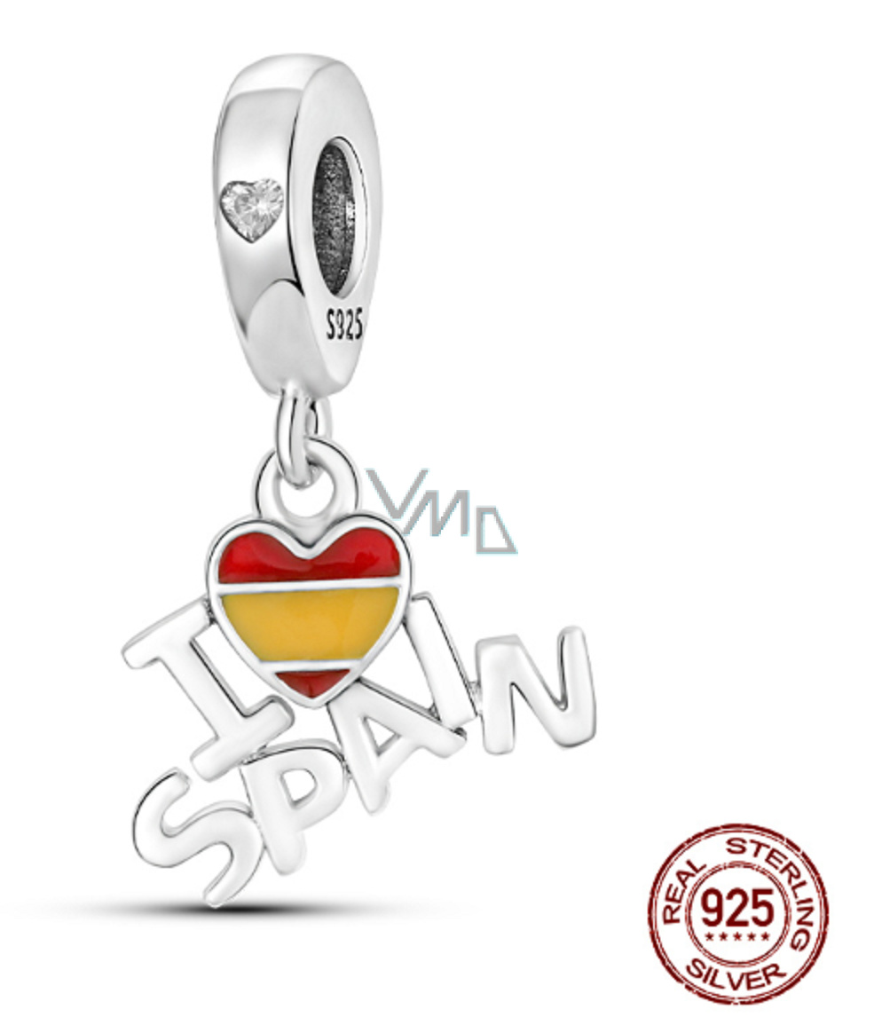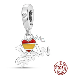 Charm Sterlingové stříbro 925 Španělsko vlajka srdce - Miluji Španělsko, 2v1 přívěsek na náramek cestování