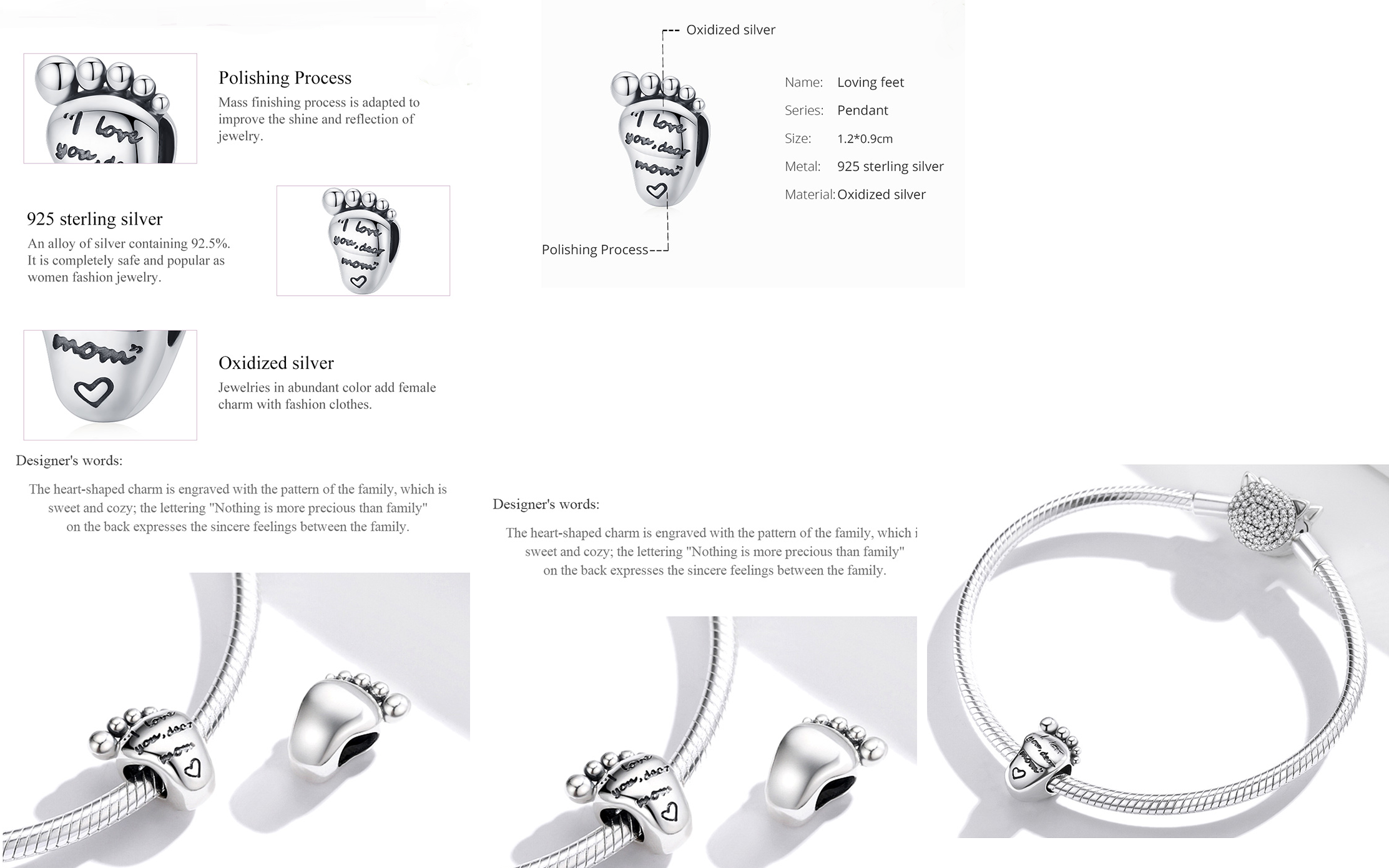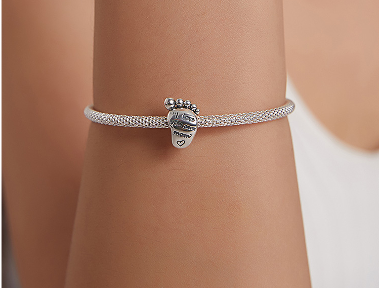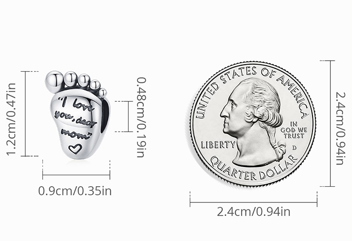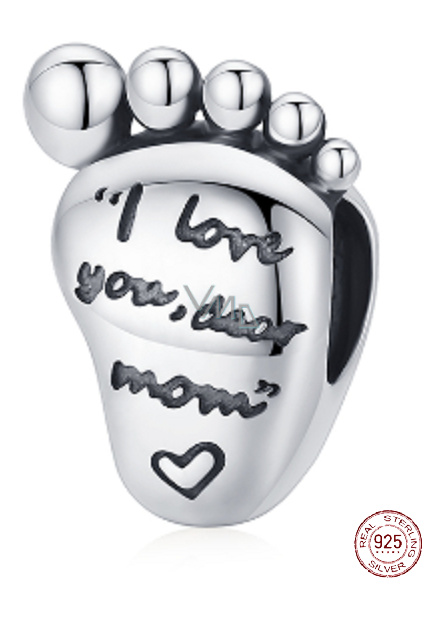 Charm Sterlingové stříbro 925 Miluji tě drahá mami, otisk nohy, korálek na náramek rodina