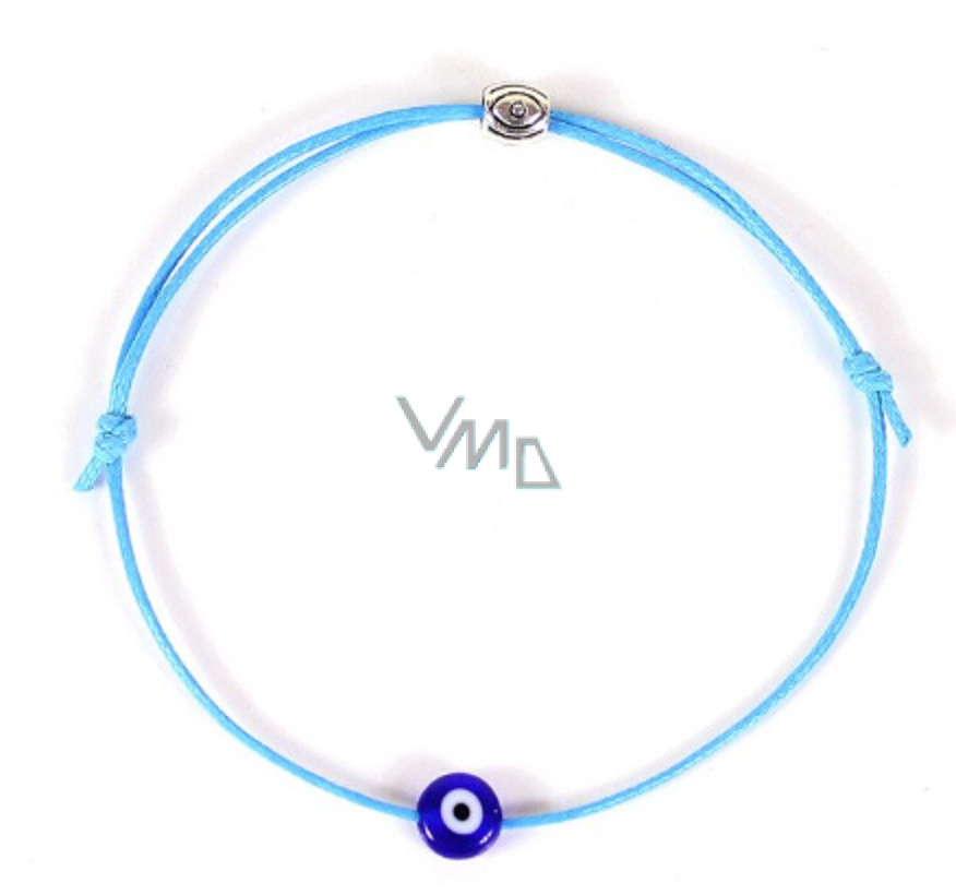 Modré oko náramek provazový tkaný světle modrý, komponent ve stříbrné barvě