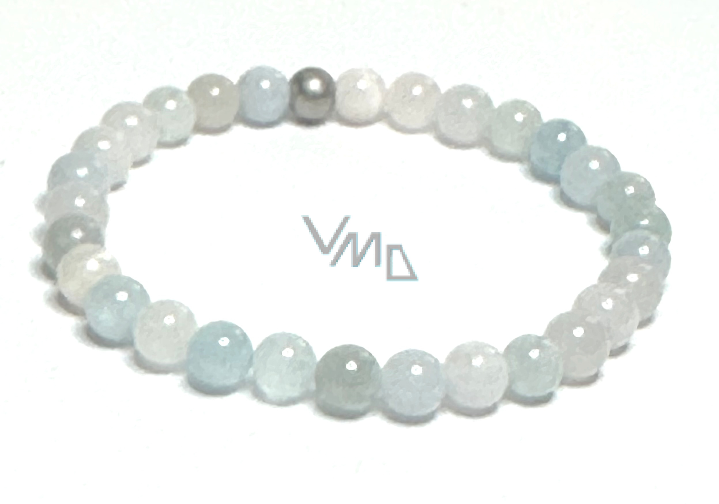 Morganit modrý náramek elastický přírodní kámen, kulička 6 mm / 16 - 17 cm, kámen božské lásky
