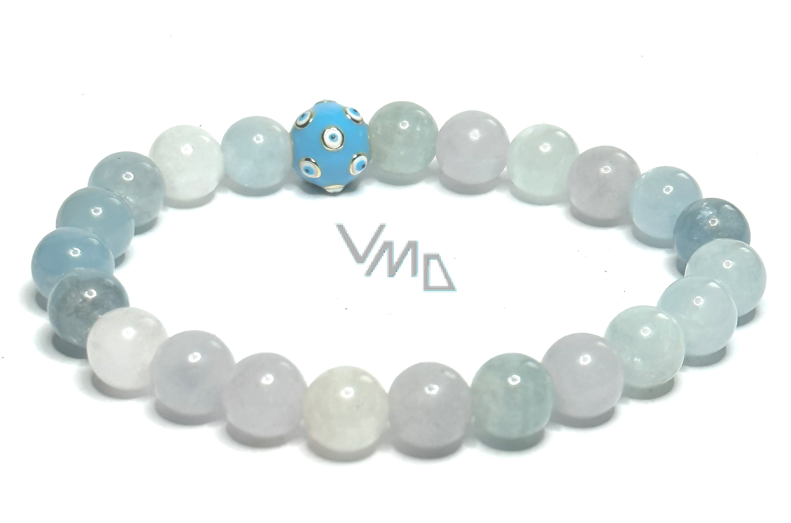 Morganit modrý náramek elastický přírodní kámen, kulička 8 mm / 16 - 17 cm, kámen božské lásky