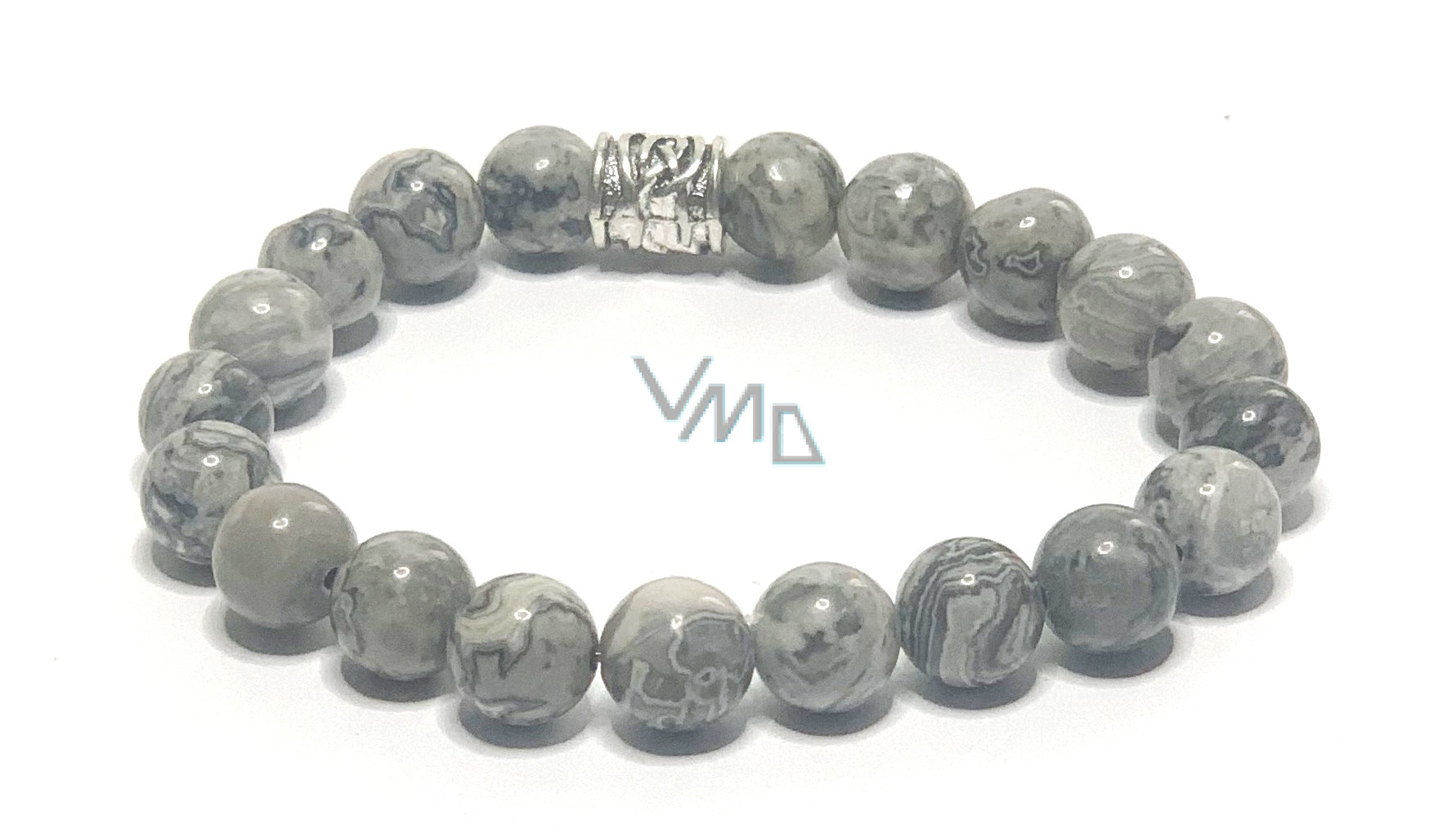 Mramor šedý náramek elastický přírodní kámen, kulička 8 mm / 16 - 17 cm