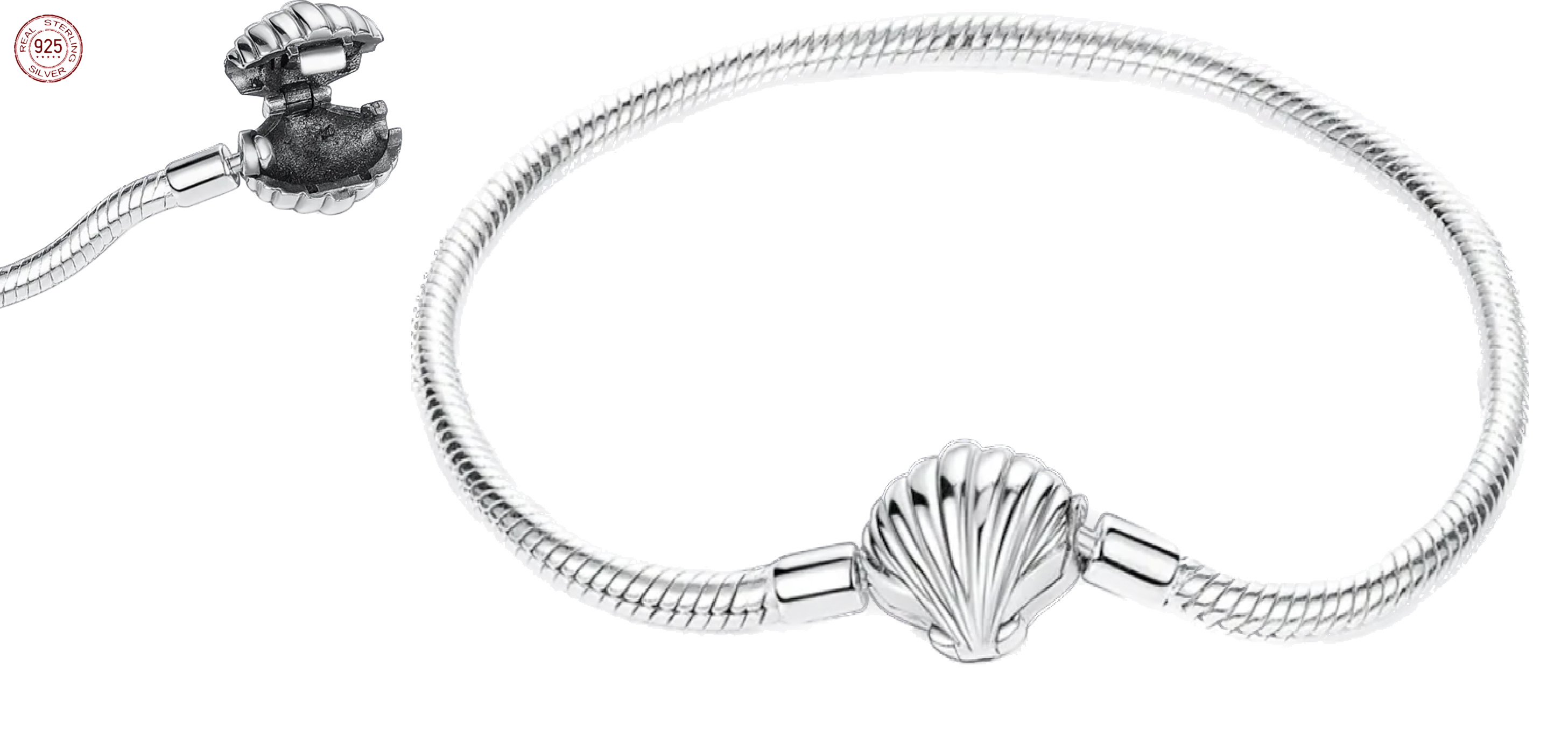 Sterlingové stříbro Náramek Mušle hadí řetízek 19 cm