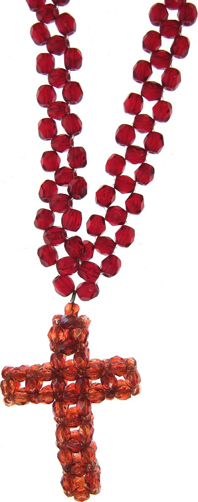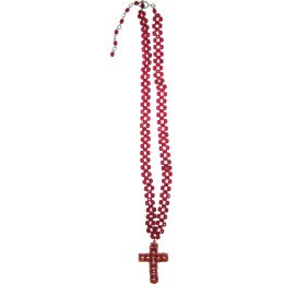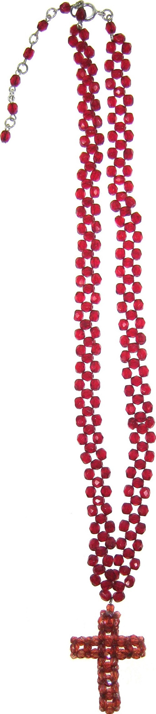 Náhrdelník z broušených krystalů. Bižuterní šperk má červenou barvu a zapínání na klasickou karabinku.