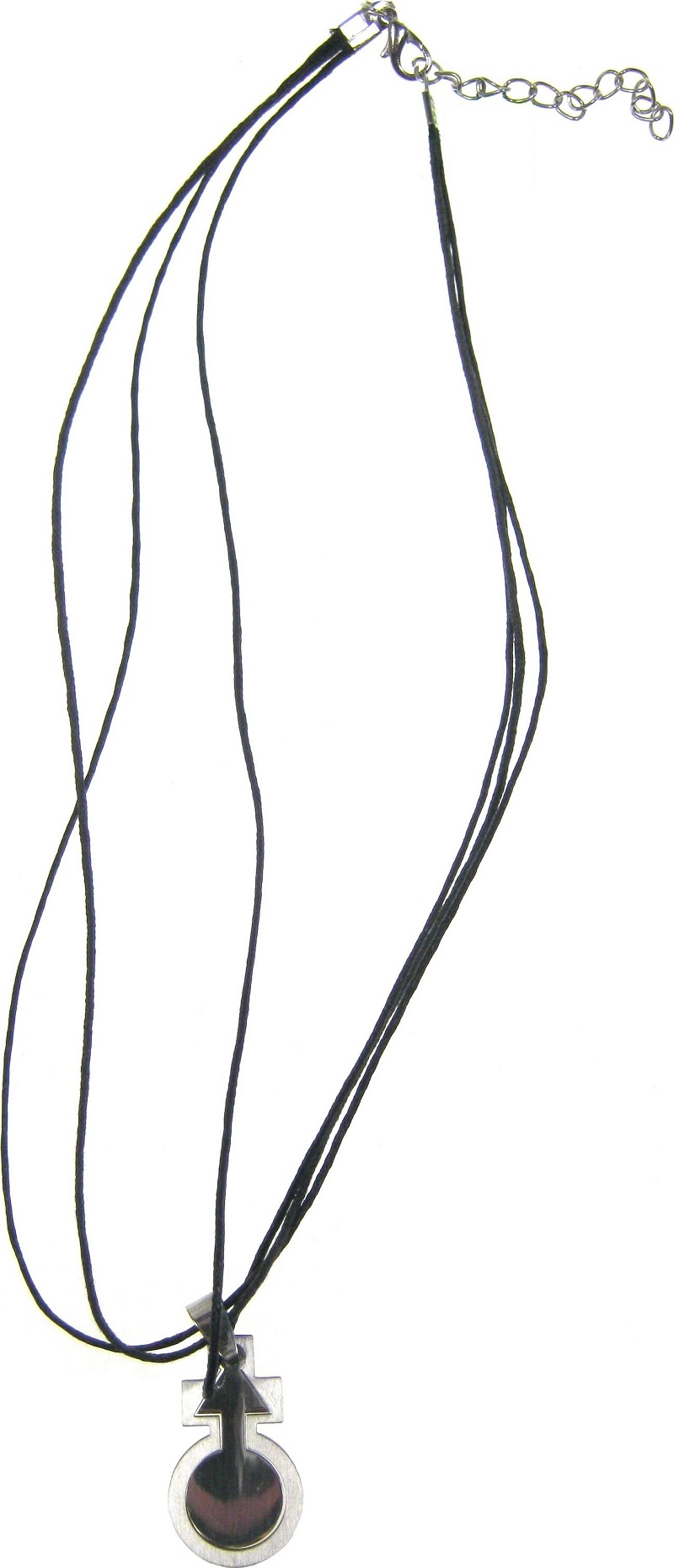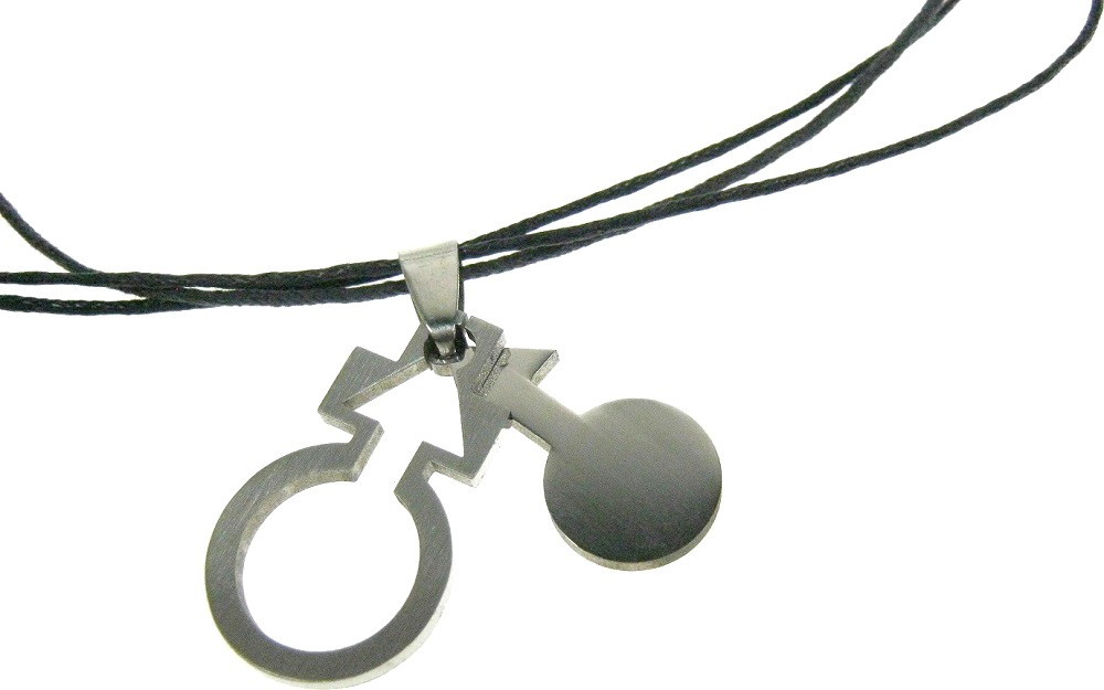 Kožený náhrdelník s ocelovým přívěškem. Přívěšek je z části matný a z části lesklý. Zapínání na klasickou karabinku.
