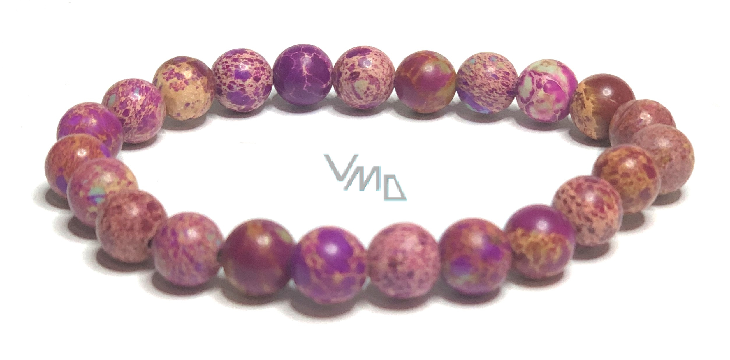 Jaspis / Regalit Imperiální mořský sediment fialový náramek elastický směsný minerál, kulička 8 mm / 16 - 17 cm
