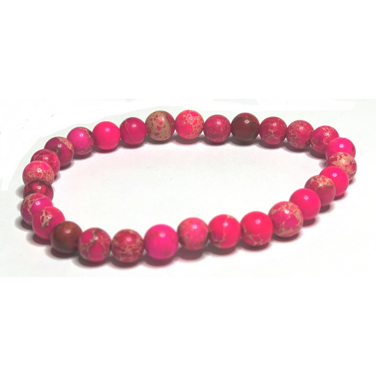 Jaspis / Regalit Imperiální mořský sediment růžový náramek elastický směsný minerál, kulička 6 mm / 16 - 17 cm