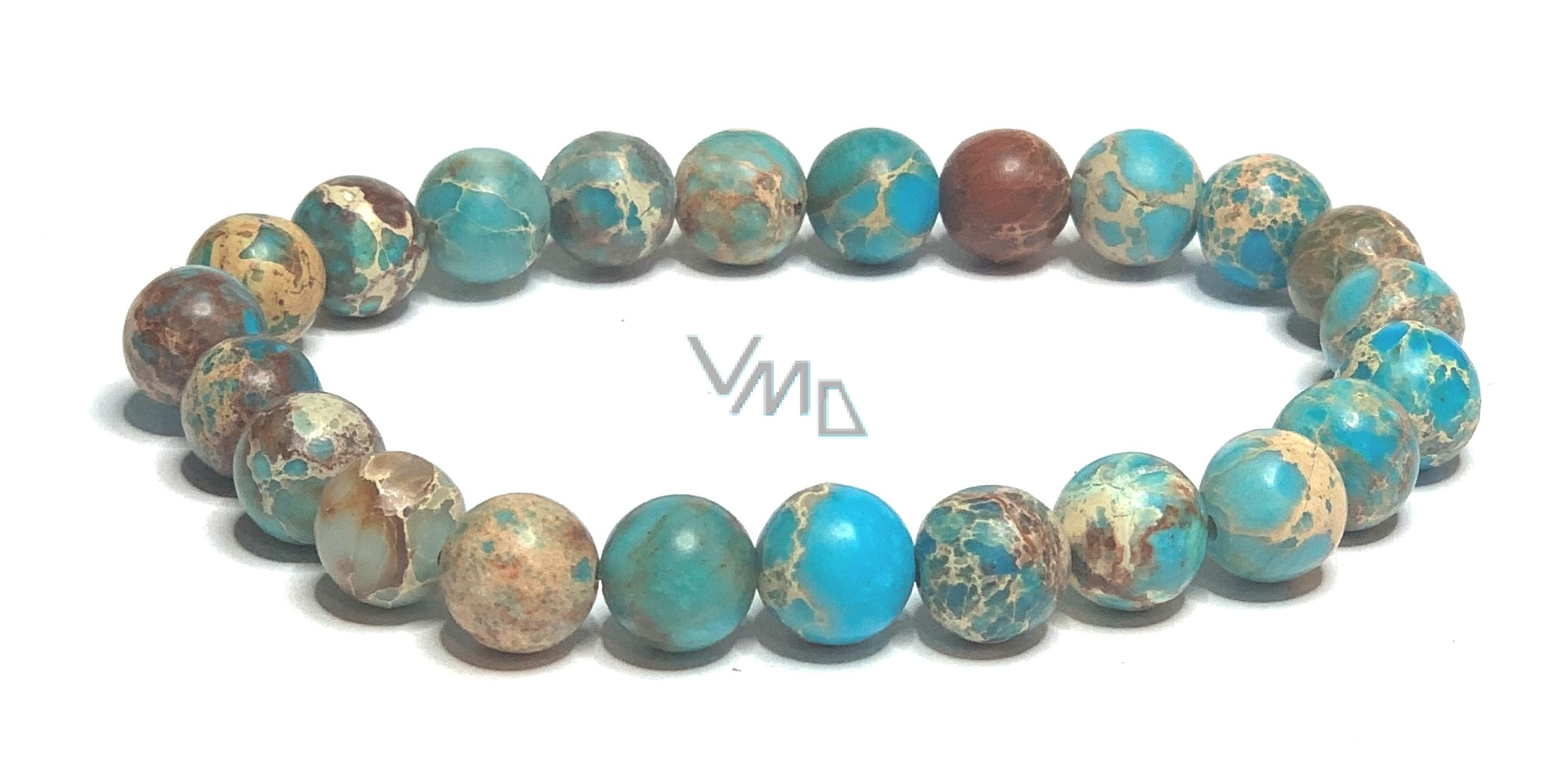 Jaspis / Regalit Imperiální mořský sediment tyrkysový náramek elastický směsný minerál, kulička 8 mm / 16 - 17 cm