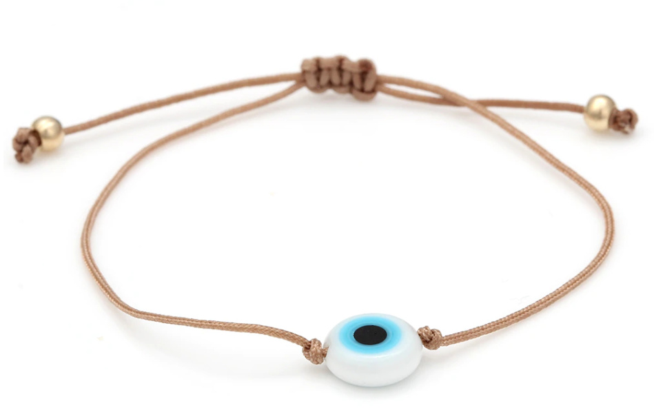 Modré oko náramek provazový tkaný hnědý, zlatá barva kulička