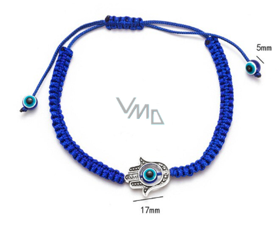 Modré oko náramek provazový tkaný tmavě modrý, hamsa 17 mm