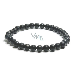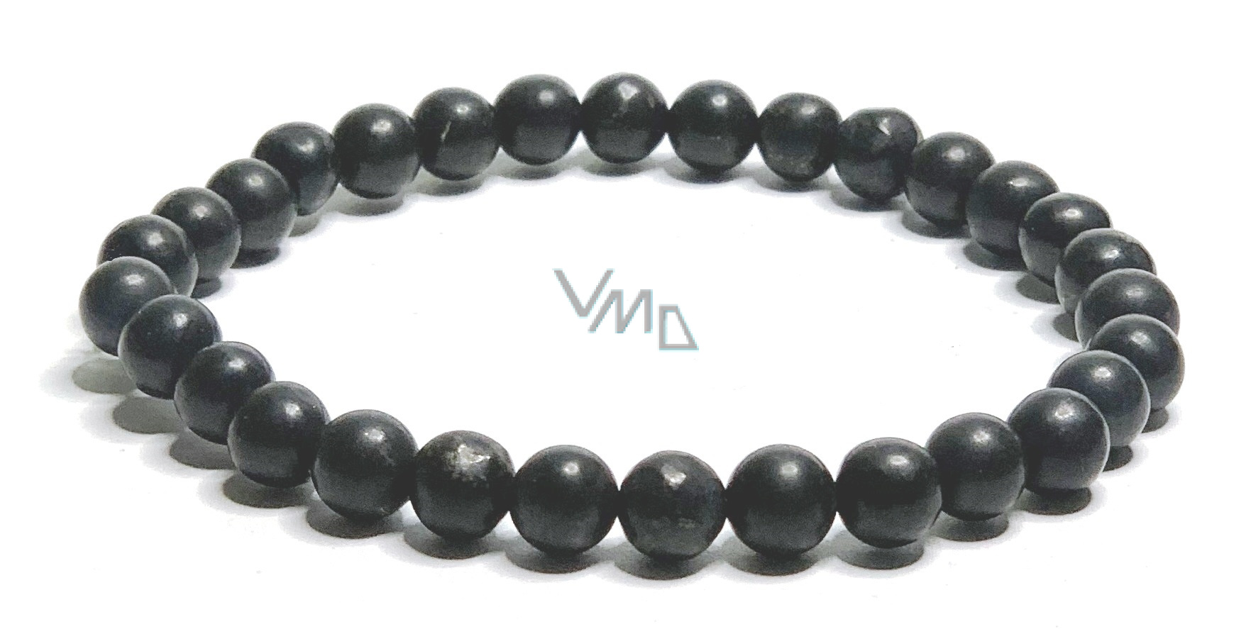 Šungit náramek elastický přírodní kámen, kulička 6 mm / 16 - 17 cm, kámen života