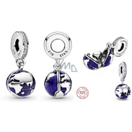 Charm Sterlingové stříbro 925 Planeta země - Modrá planeta, 2v1 otevírací, uvnitř srdce, přívěsek na náramek vesmír