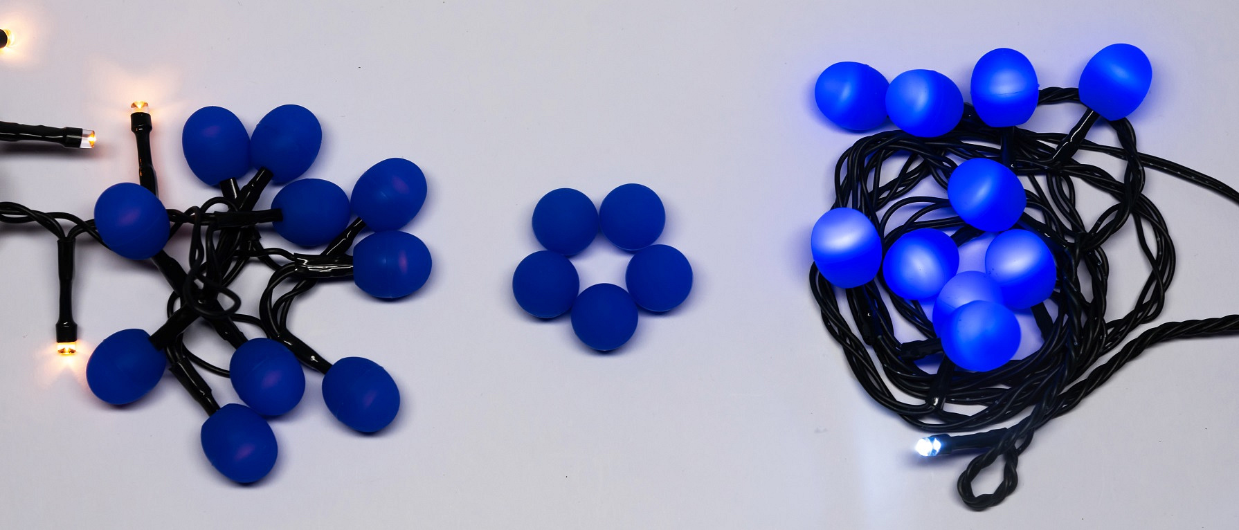 - Navlečete jednotlivé čepičky na jednotlivé LED diody, dle vašich barevných představ a je hotovo.