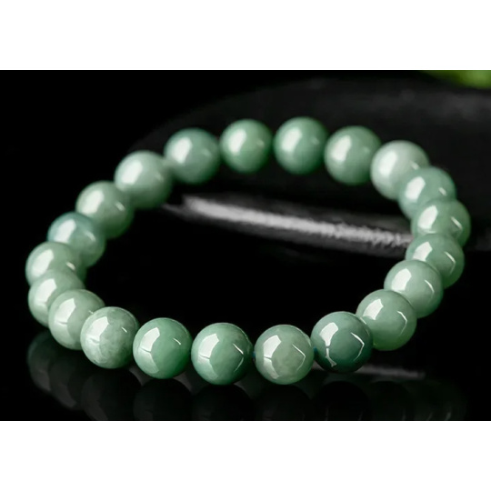 Nefrit Barmský náramek elastický z přírodního kamene, kulička 9 mm / 16 - 17cm, kámen klidu