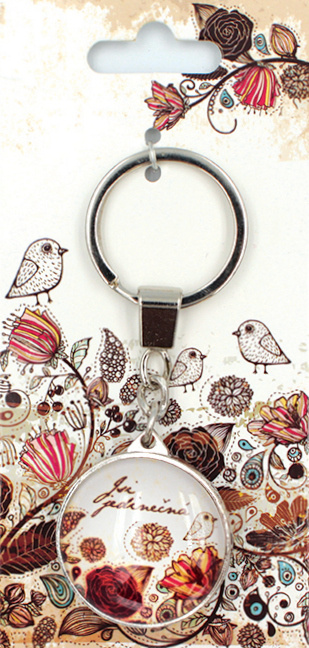 Kovová klíčenka s obrázkem, oboustranná, balená na blistru ve stejném designu.