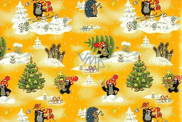 Nekupto Dárkový balicí papír 70 x 200 cm Vánoční Krteček žlutý 1 role