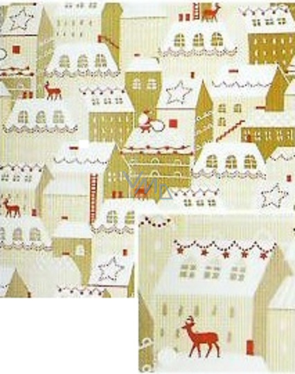 Nekupto Dárkový balicí papír vánoční 70 x 1000 cm Béžový, domečky