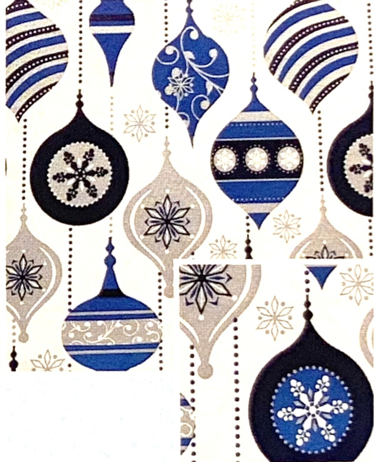 Nekupto Dárkový balicí papír vánoční 70 x 1000 cm Bílý s modrými a stříbrnými ozdobami