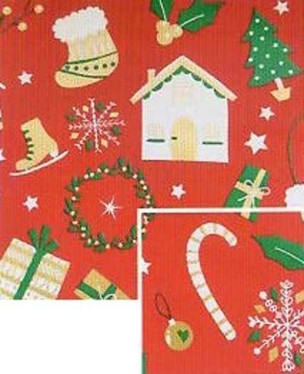 Nekupto Dárkový balicí papír vánoční 70 x 200 cm Červený, domečky, dárky, věneček