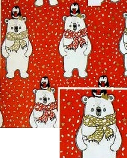 Nekupto Dárkový balicí papír vánoční 70 x 200 cm Červený, lední medvěd, tučňák