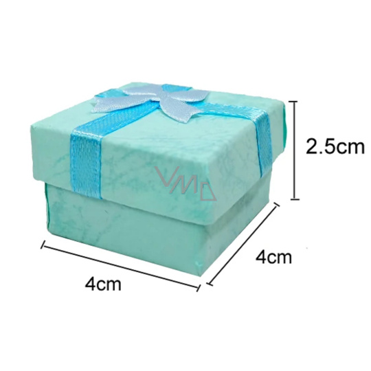 Dárková krabička s houbičkou na šperky s mašlí 4 x 4 x 2,5 tyrkysová 1 kus